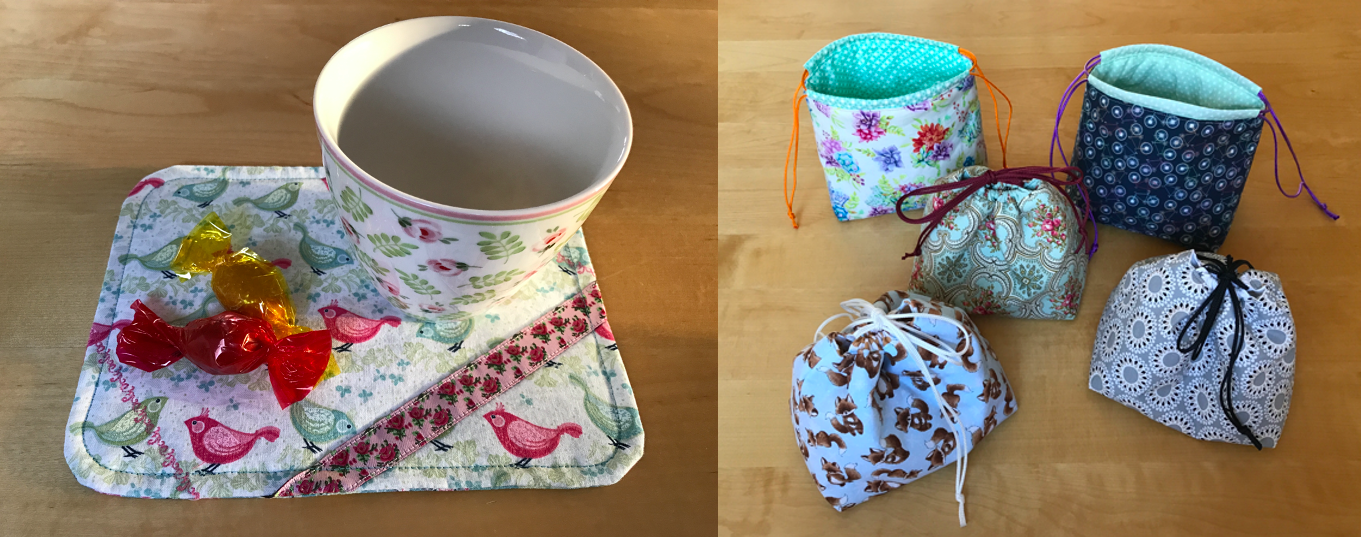 So entstehen unter anderem praktische und alltagstaugliche Produkte wie die Mug Rugs (Tassenteppiche) und Kinchaku (Japanische Stoffbeutel mit Kordelzug), welche das Leben etwas bunter und fröhlicher machen – einfach so…